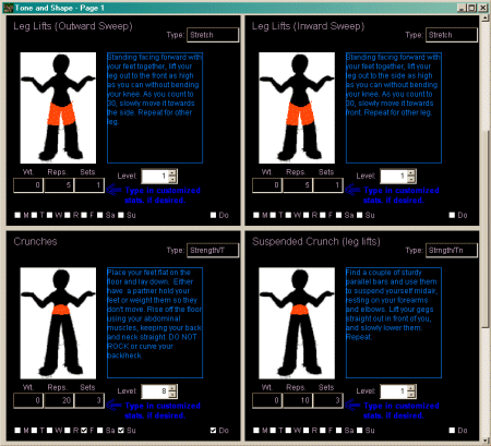 Exercises included cover a wide range to help you with whatever path you decide your training should take. There are speed, strength, toning, agility, cardiovascular, flexibility, stretching, and therapeutic exercises included.