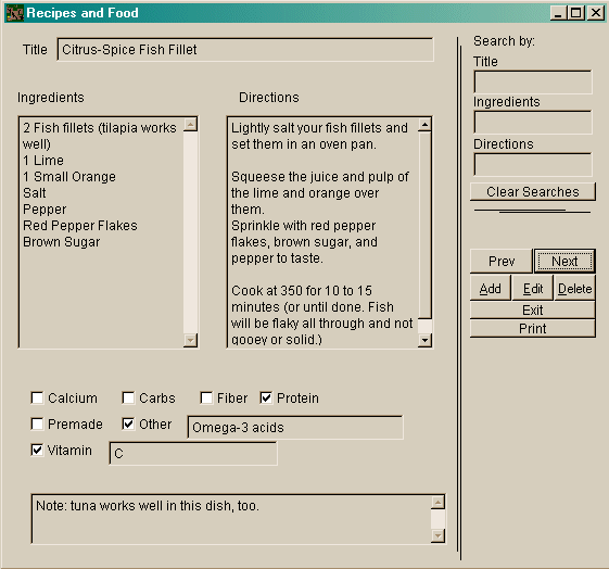 And here we have the recipes and nutrition database: